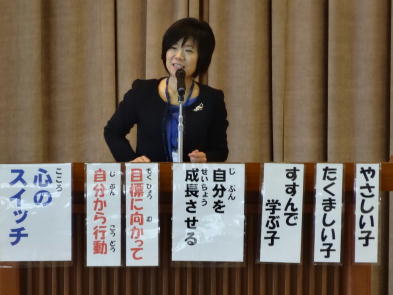 若田光一さんのお話を通して、小さいときから目標をもって取り組むことの重要性を話されました。