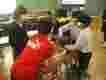 どの店も子どもたちの創意工夫を凝らしたものになっています。左から福笑いの様子、体育館でのサスケの様子、輪投げの様子です。 1年生にとっては初めての、6年生にとっては最後の「総小フェスティバル」です。良い思い出になったことでしょう。